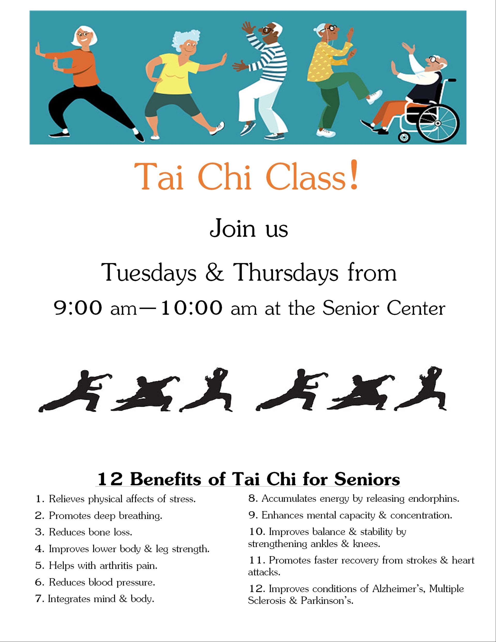 Each Tai Chi class is designed to assist seniors in improving balance & flexibility. Modified moves may be done from a seated or standing position. Call the Center today to get signed up!