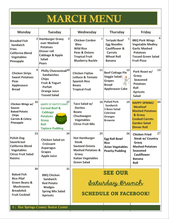 Dietitian-approved meals served Monday-Friday, 11:30 a.m. - 1:00 p.m. to persons 60 and older and their spouses of any age.